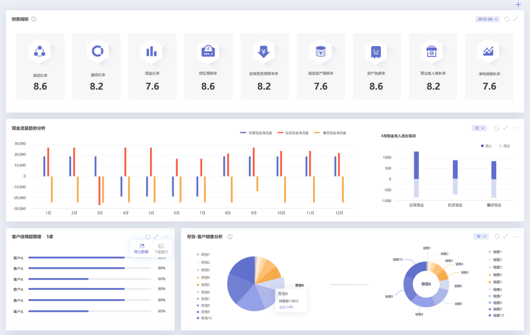 更重要的是,云工贸ERP集成了BI数据分析功能,打造了企业个性化数据可视化平台,辅助管理层决策分析。